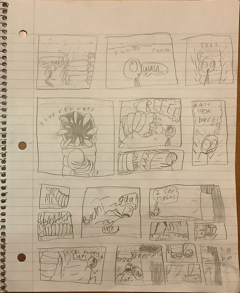 Arnolds story goes on as he walks through the ominously long hallway and finds his way into an underground labyrinth! But something is lurking through the sandy walls of the maze.